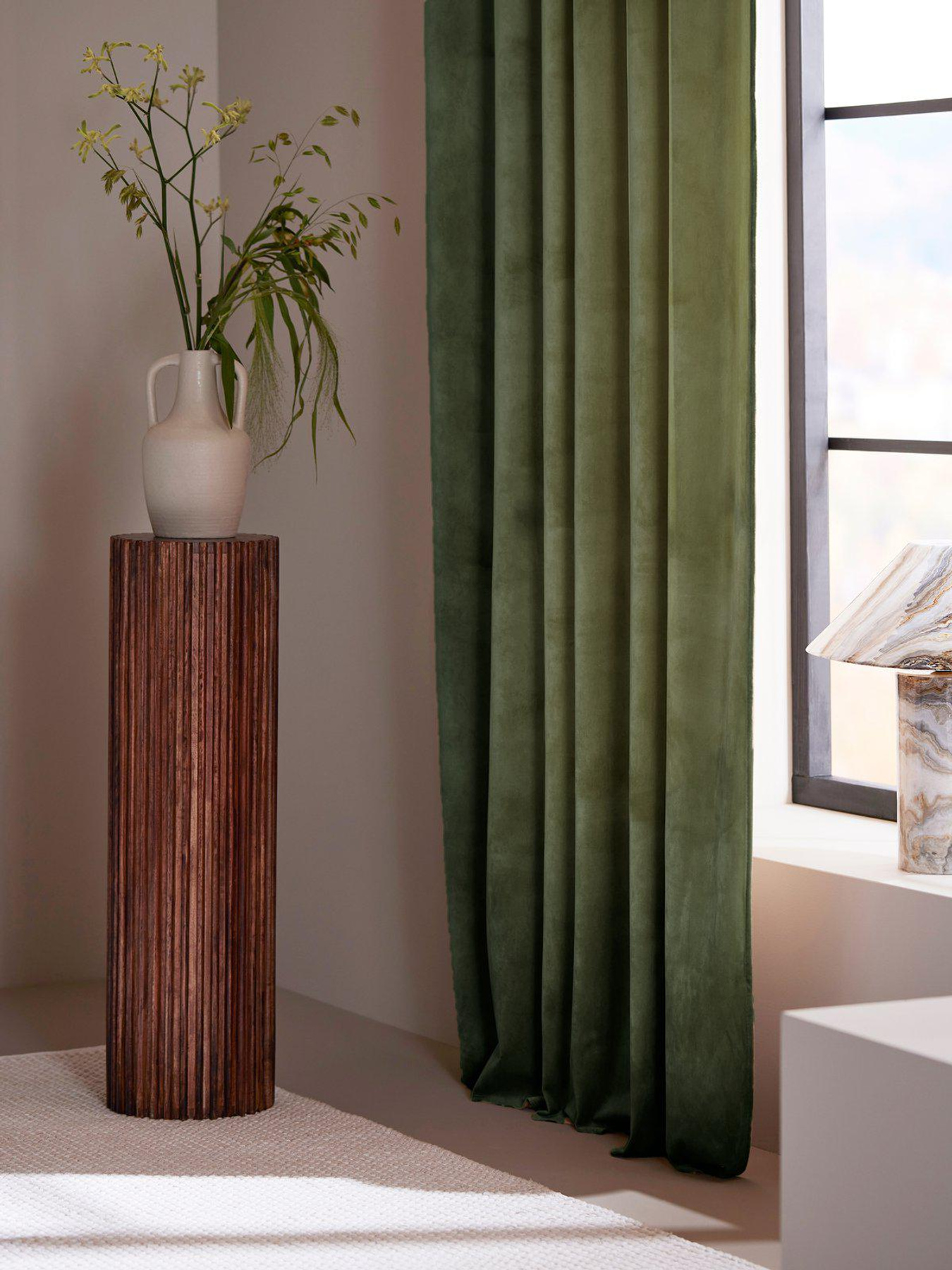 Multi tape curtain Estelle in velvet 2-pack Moss green