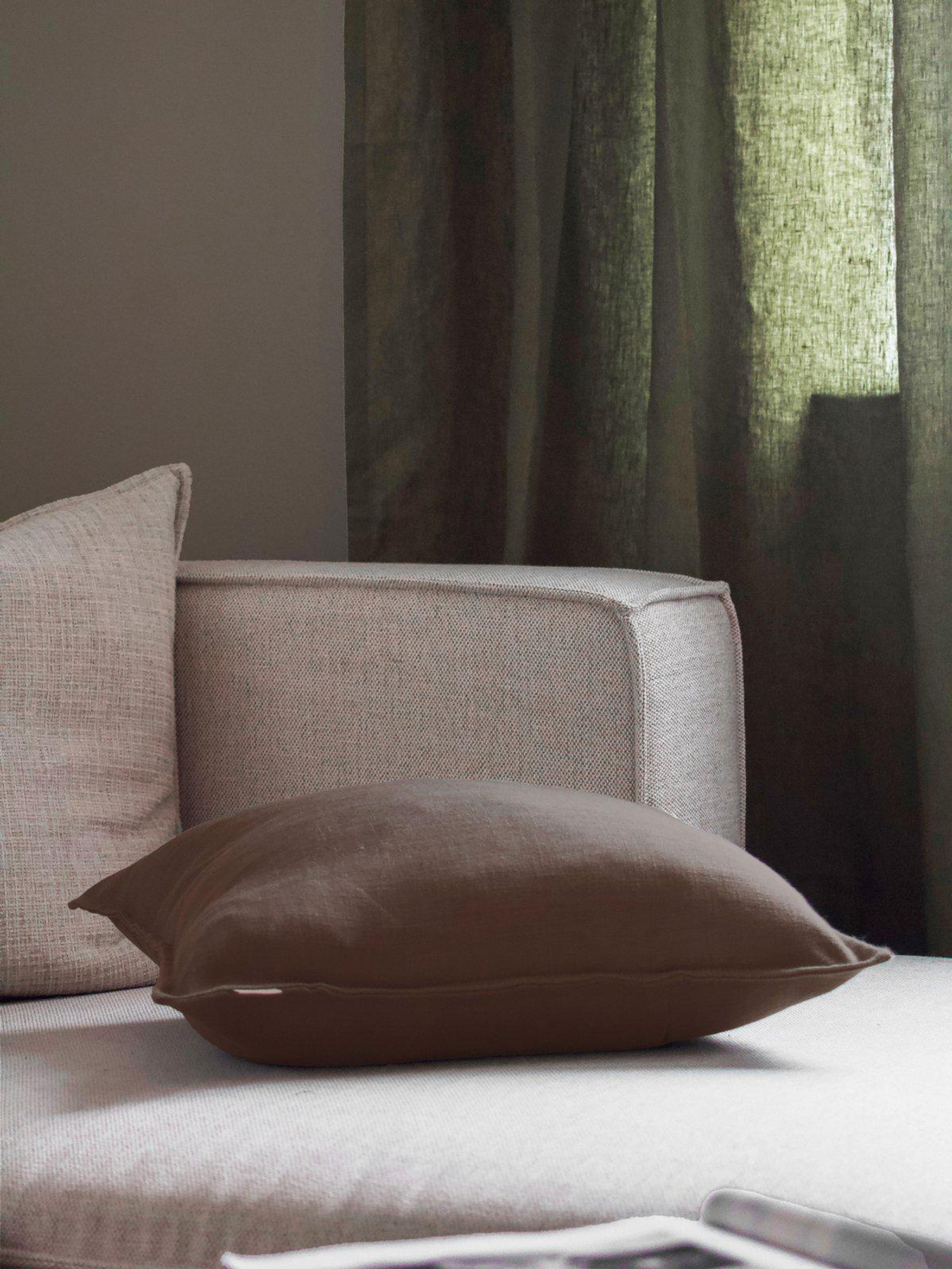 Kuddfodral Julie i tumlat linne Brunt